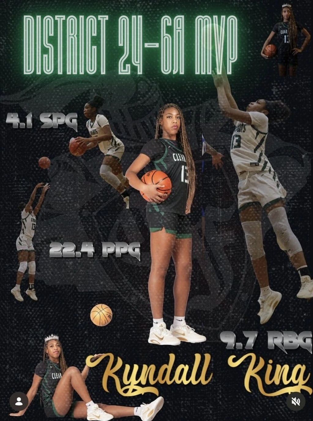 A huge congratulations to Kyndall King on being named District 24-6A Most Valuable Player! This incredible honor speaks to the impact she has made all season through her leadership, talent, and outstanding play on the court. With impressive numbers and a game-changing presence, Kyndall has proven herself as one of the top players in the district. We are beyond pr