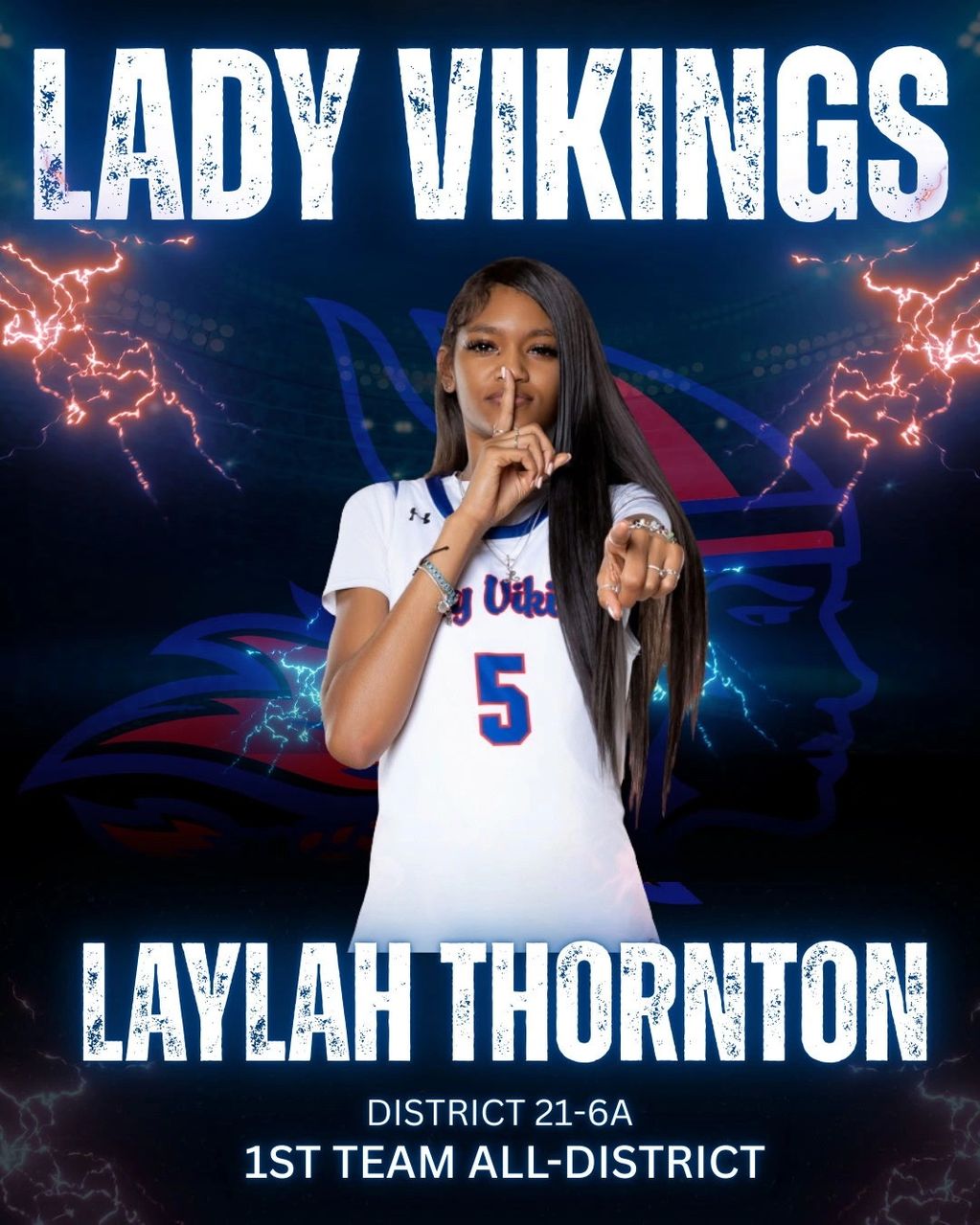 We are proud to recognize Laylah on earning District 21-6A 1st team All-District honors! Laylah's hard work, dedication and commitment to the game have truly set her apart. CONGRATULATIONS, LAYLAH!!